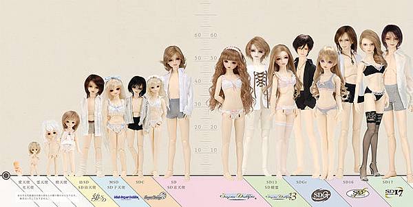 (以上為Volks出品的娃尺寸) 每家都有些不同